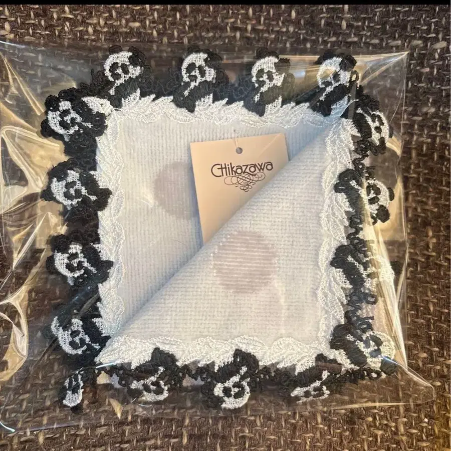 치카자와 레이스 타월 손수건 팬더 (도트 무늬) 화이트 흰색 1개