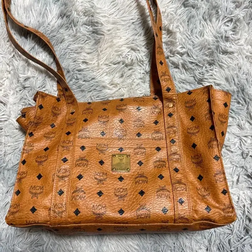MCM 브라운 가죽 토트백 비세토스 패턴