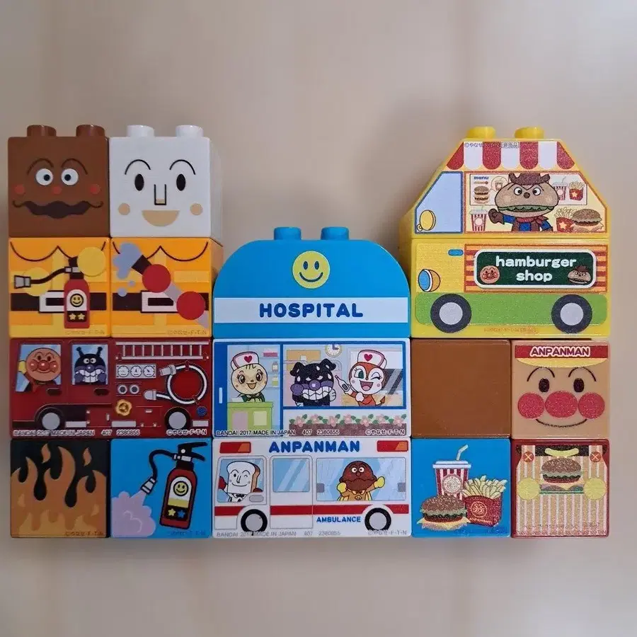 호빵맨 블록 라보 병원 햄버거샵 소방차