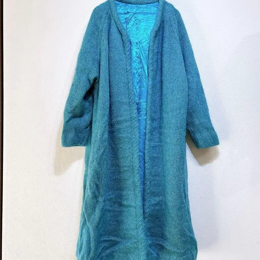 터콰이즈 니트 가디건 안감 부착 프론트 오픈 겉옷 아우터