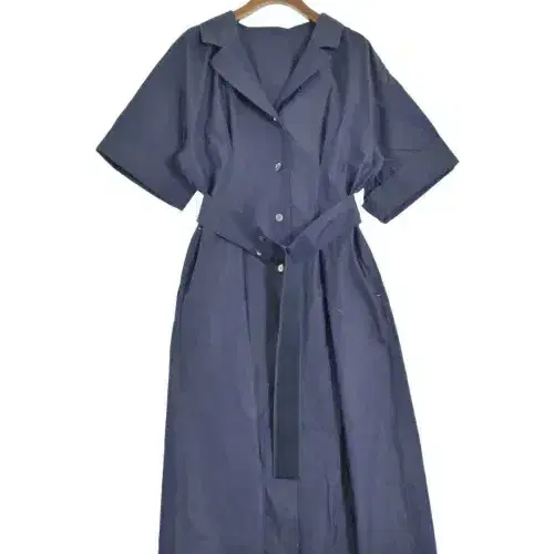 네이비 오부 소매 스트레이트 원피스 벨로아 원단풍