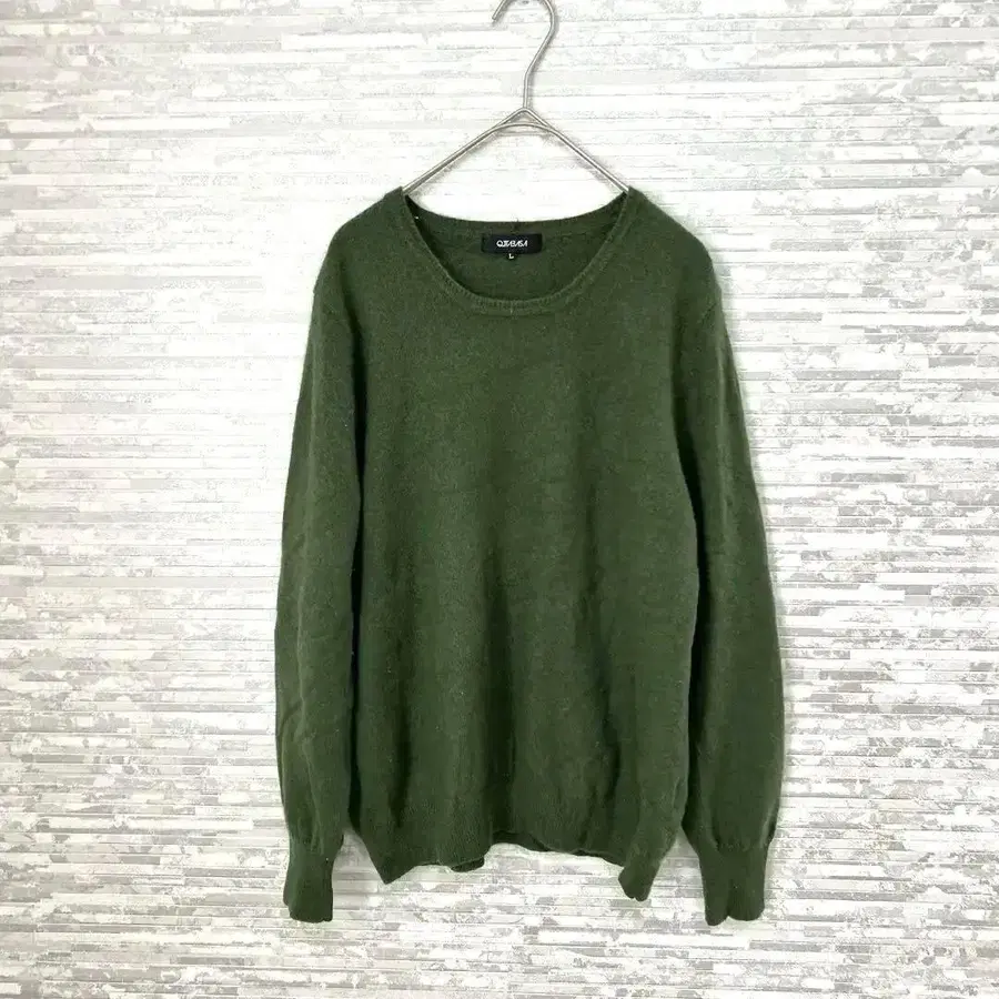 키타바사 캐시미어 100% 그린 긴팔 크루넥 니트 L