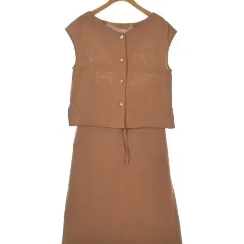 드레스 프로덕션 브라운 새틴 드레스 싸개 버튼 M