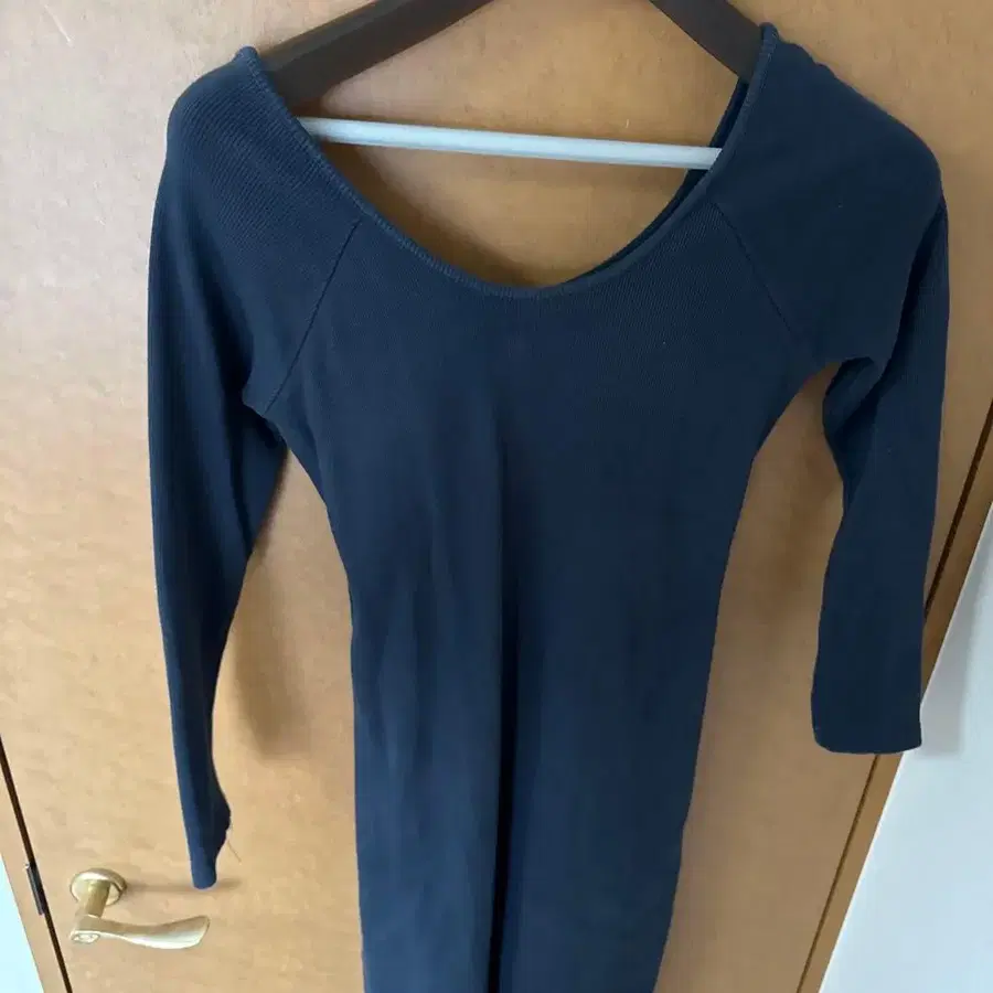 다크 블루 오프숄더 긴팔 상의