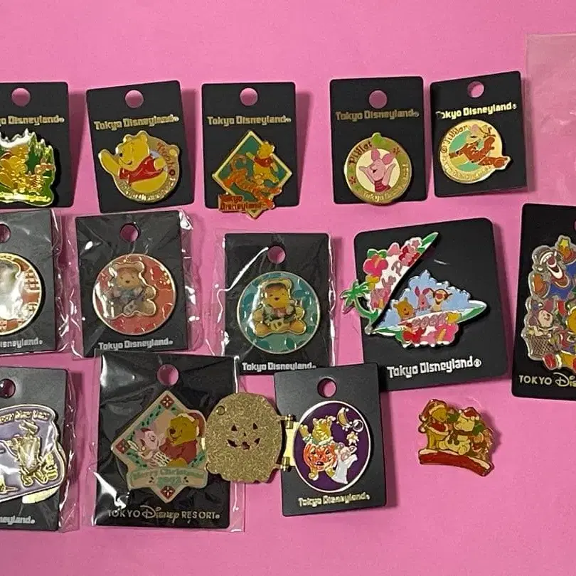TDL 디즈니랜드 푸우 핀 배지 세트 레트로