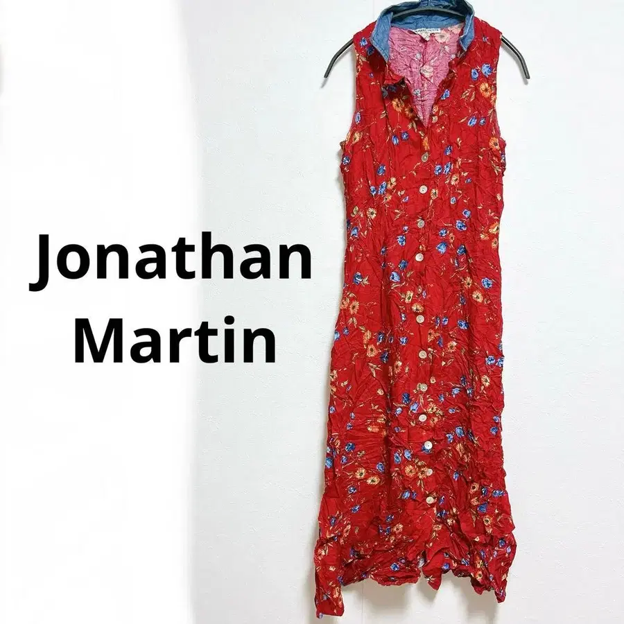 조나단 마틴 빨간 꽃무늬 슬리브리스 원피스 레드