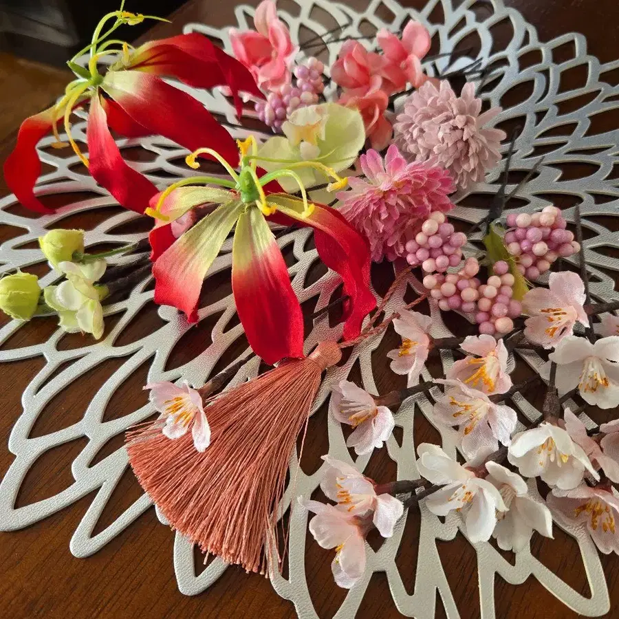 벚꽃, 글로리오사 등 머리 장식 결혼식, 성인식 등에