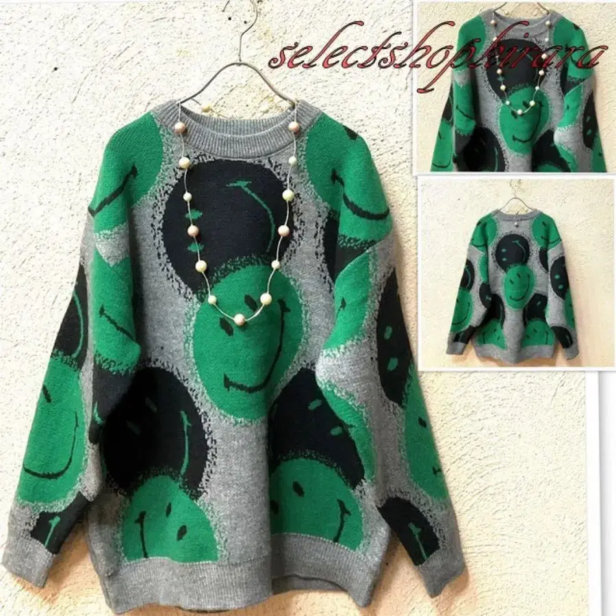 2025 신상 루즈한 사이즈 스마일 올 패턴 쫀득 니트 풀오버 L-LL