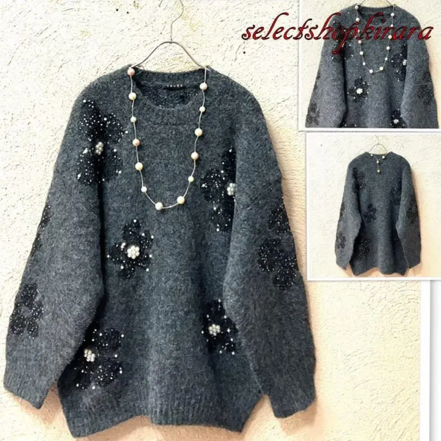 ◎ 대호평의 루즈한 사이즈 ☆ 신축성 ◎ 부드럽고 포근한 ☆ 스팽글 & 펄 플라워 모티브 니트 풀오버가 입고되었습니다.