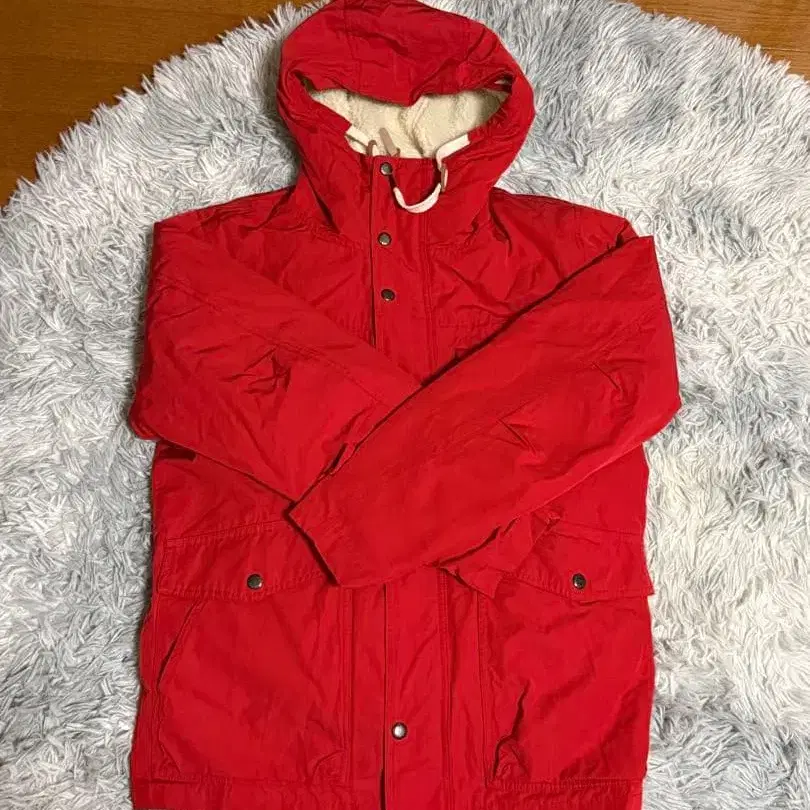 coen 후드 부착 마운틴 파카 아우터 레드 플리스