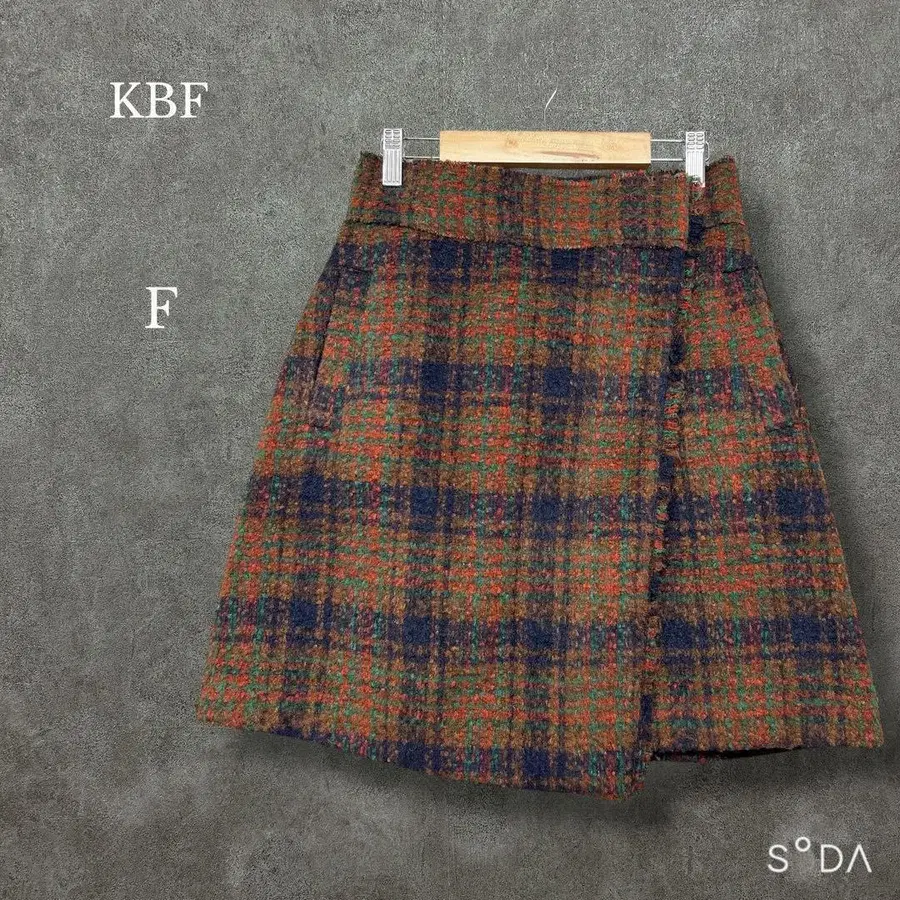 KBF [ F ] 체크 무늬 미니 스커트 랩스커트 울 혼방 안감 있음