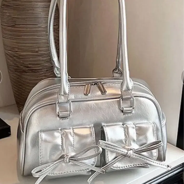 실버 메탈릭 핸드백 약간의 모양 망가짐 있음