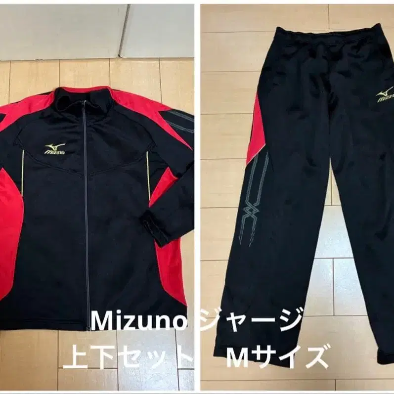 미즈노 집업 자켓 블랙/레드 상하의 세트 M 사이즈