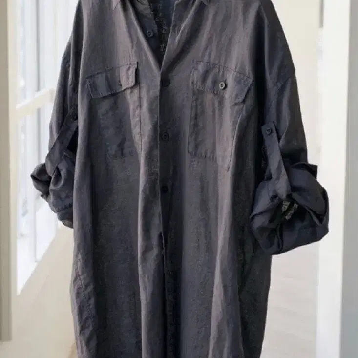 스픽 앤 스팬 다크 그레이 오버 사이즈 셔츠