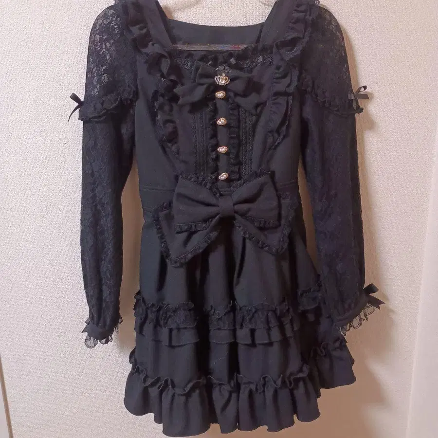 LIZLISA 티아라 리본 티어드 원피스 블랙