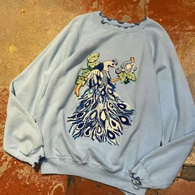 파일 패치 맨투맨 빈티지샵 구매 스카이블루 공작 자수 맨투맨