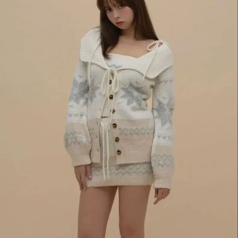 andmary Heart nordic 가디건 세트 그레이