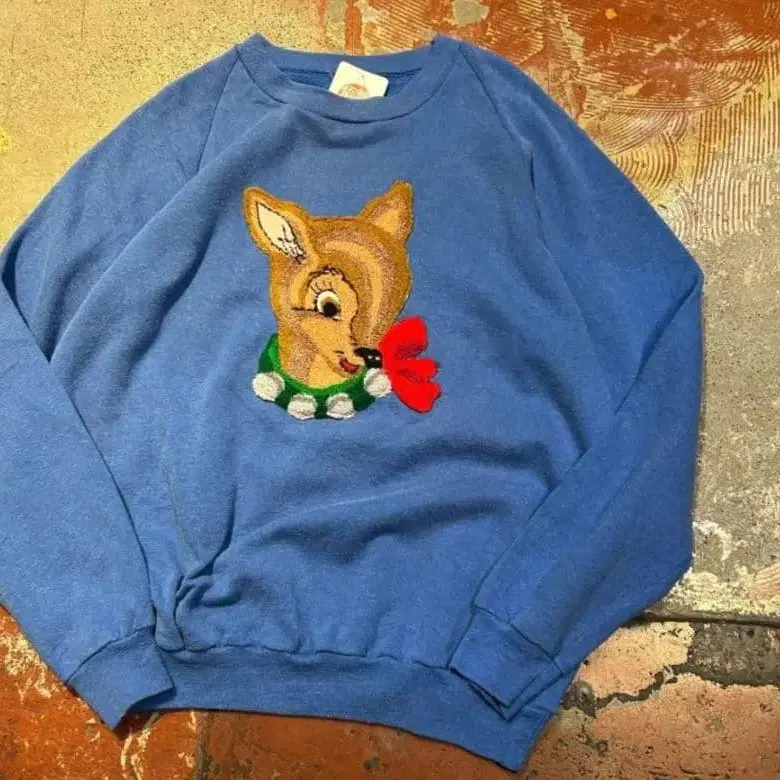 빈티지샵 구매 파일 패치 사슴 자수 파랑 맨투맨