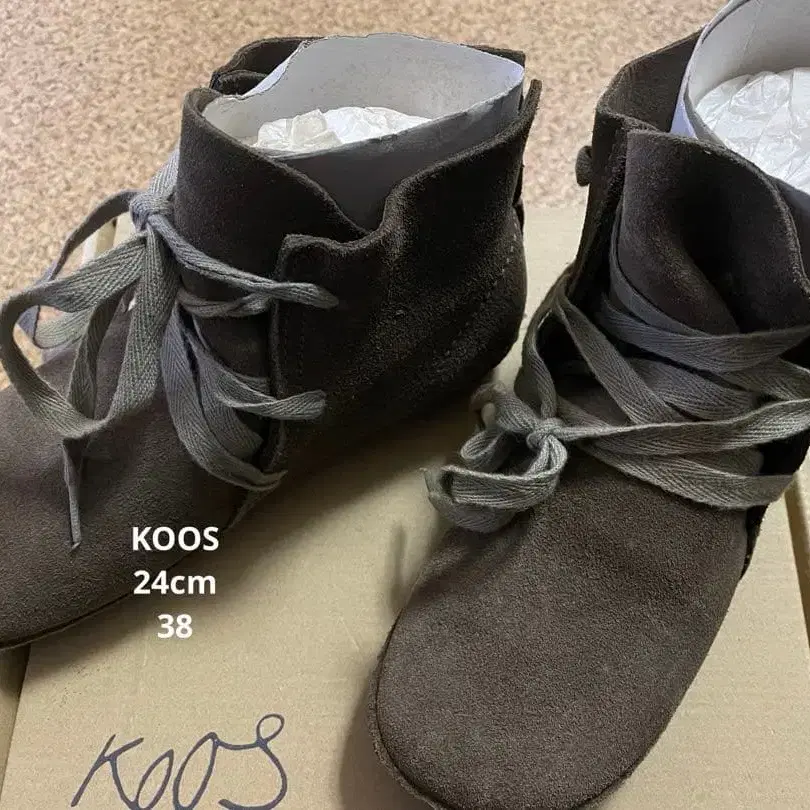 [새상품급] 코스 KOOS 24cm 숏부츠 스웨이드 레이스업 소가죽