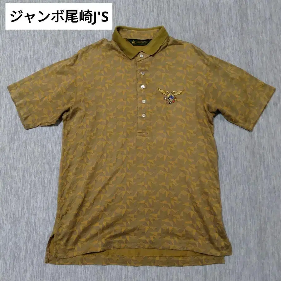 점보 오자키 골프 기하학 패턴 카키 반팔 피케 셔츠 M