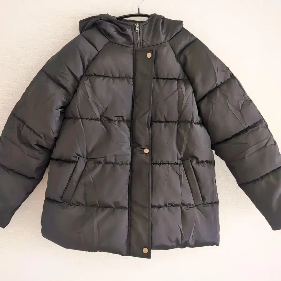 블랙 후드 부착 다운 자켓