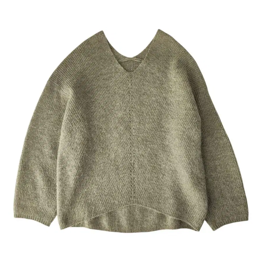 헤어리 니트 V넥 오버사이즈 내추럴 베이지 알파카 혼방