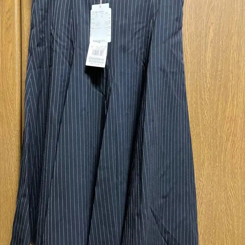 네이비 스트라이프 플레어 스커트 무릎 기장