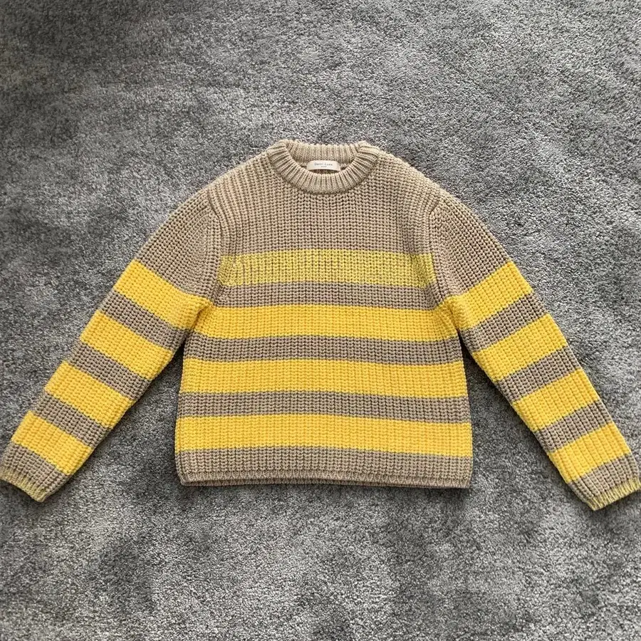 가장 윗부분의 라인과 소매를 멜란지처럼 보이도록 편직한, 위트 있는 보더 니트입니다. 캐주얼한 분위기 속에 단정함을 더하는 컴팩트한 기장도 포인트입니다.
