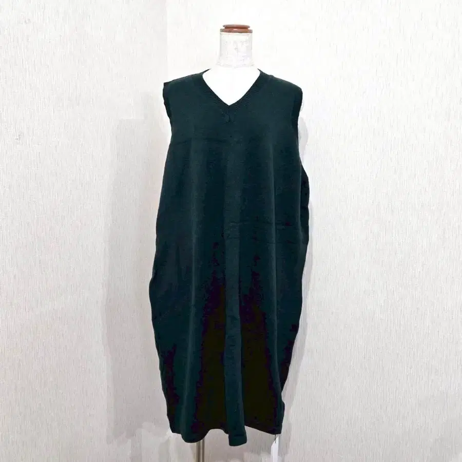 택 포함 미사용 JUNOAH V넥 니트 롱 베스트 원피스 그린