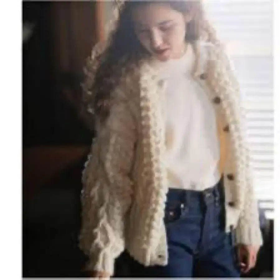 PUR 아이보리 케이블 니트 가디건 이케다 이즈미