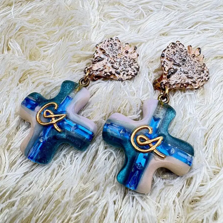 레어 크리스찬 라크로와 하트 크로스 스윙 귀걸이