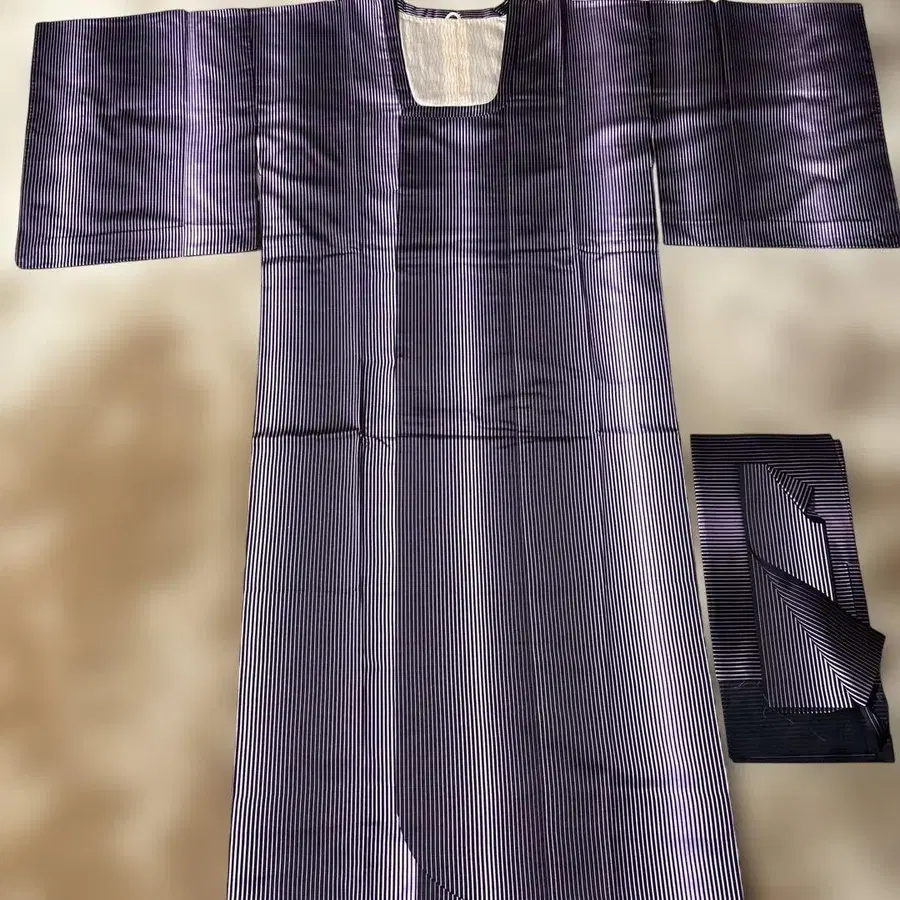 스트라이프 그라데이션 보라색 도행 롱 코트 실크 100%