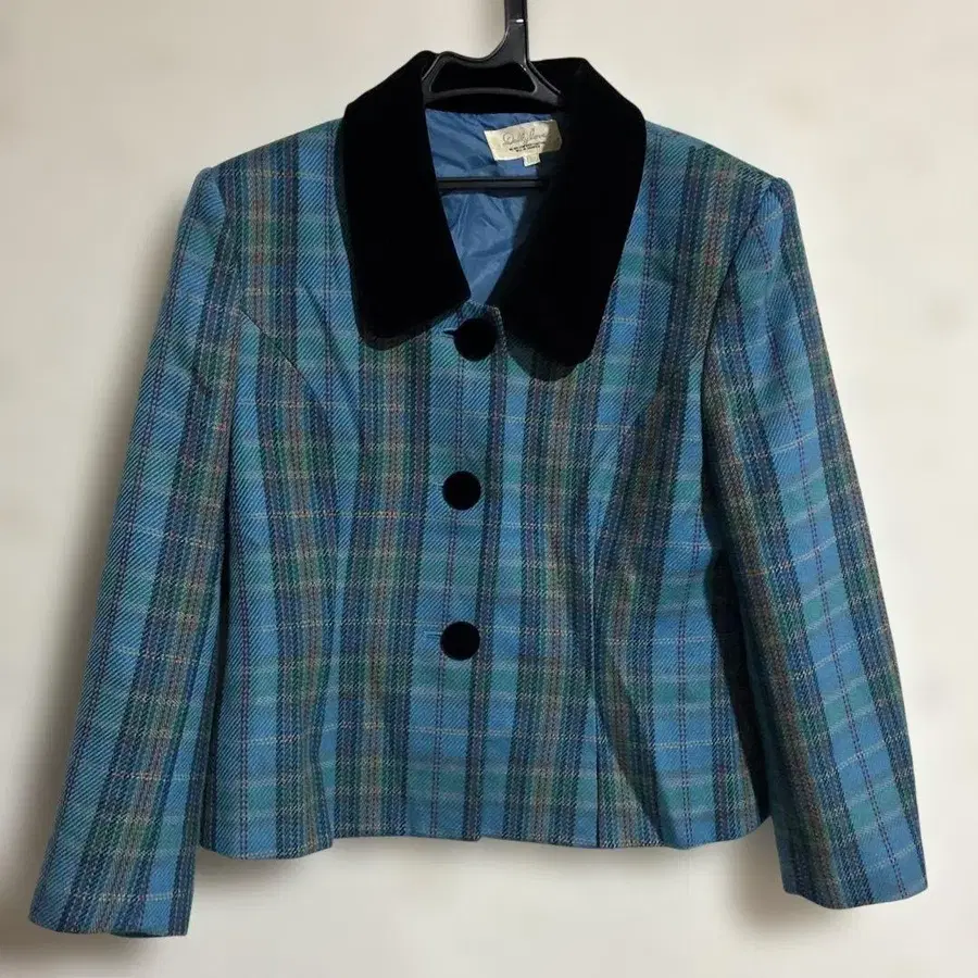 레트로 자켓 체크 벨로아 블루 계열