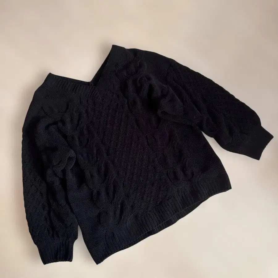 아줄바이마우지 블랙 V넥 케이블 짜임 니트