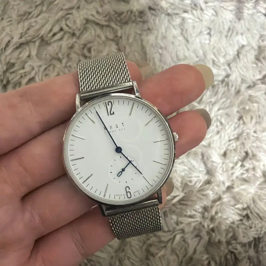 자동 번역되었어요. 원문보기심플하고 엘레강트한 디자인의 실버 아날로그 시계.
