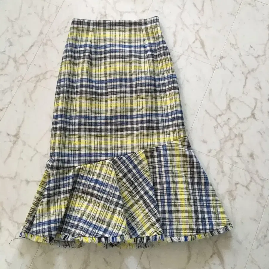 체크 무늬 플레어 밑단 타이트 스커트 더 버지니아