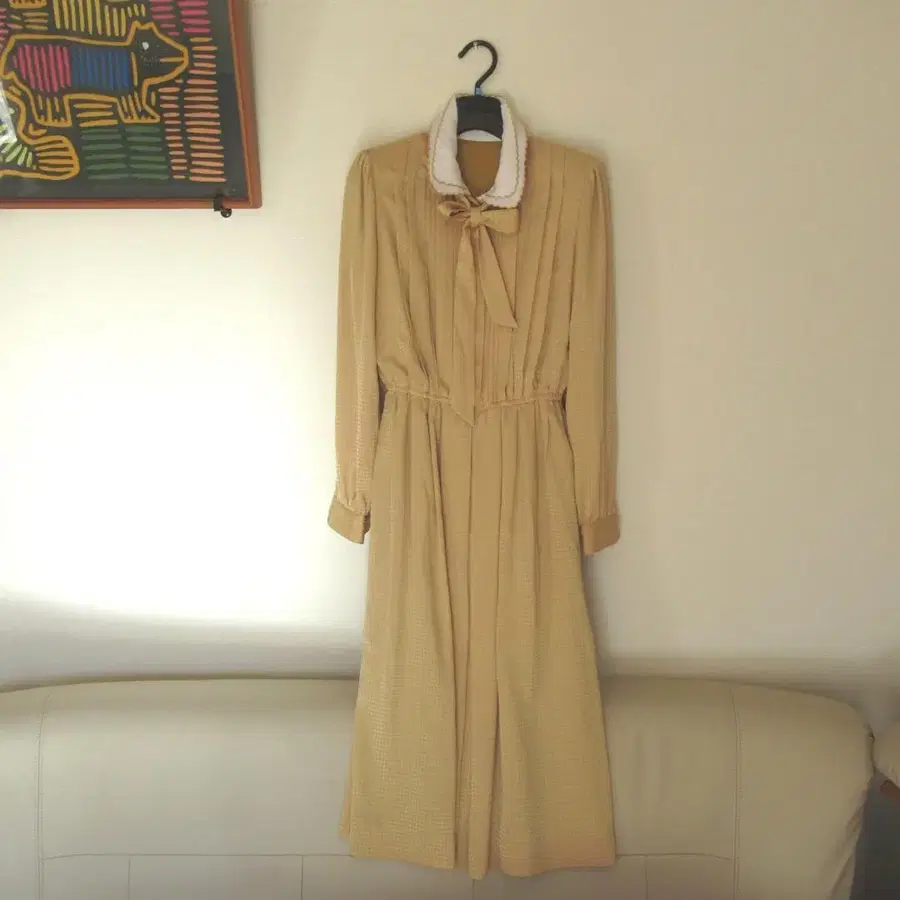 원피스 쇼와 레트로 원피스 더블 화이트 카라 부착