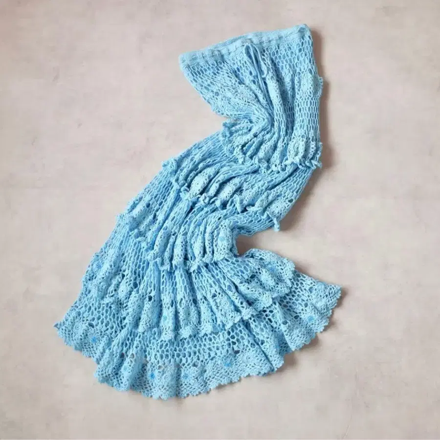 선명한 라이트 블루 색상의 크로셰 니트 롱 스커트입니다. 꽃 모티브를 조합한 섬세한 레이스 니트와 단을 이룬 티어드 디자인이 페미닌한 인상을 줍니다. 안감이 있어 비침 걱정 없이 착용할 수 있습니다. [ 상태 ] 구제 빈티지 상품으로, 약간의 사용감과 원단의 질감 변화가 있지만 착용 시 눈에 띄는 얼룩이나 찢김은 없습니다. [ 사이즈 ] 기장: 약 91cm 허리: 약 32cm ( 밴딩, 허리끈으로 조정 가능 ) [ 소재 ] 표기 없음 [ 색상 ] 라이트 블루 ( 스카이블루 ) 접어서 발송됩니다. 배송 시 약간의 접힘 주름이 생길 수 있으니 양해 부탁드립니다. 보시는 모니터나 디바이스에 따라 실제 색감과 다르게 보일 수 있습니다. 구제 빈티지 특유의 질감과 사용감이 있습니다. 이는 상품의 매력으로 이해해 주시기 바랍니다. 고객님의 사정으로 인한 취소, 반품, 교환은 어렵습니다. ※ 12월 31일은 발송이 어렵습니다 ※
