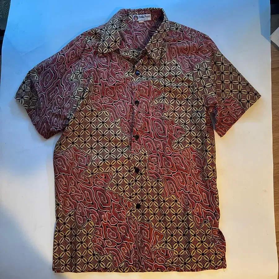 인도네시아산 바틱 패턴 셔츠, 빨간색과 블랙의 대비가 특징. 인도네시아 자카르타에서 구매했습니다. 앤티크 바틱 원단으로 만든 반팔 셔츠입니다. - 브랜드: Batik Putri - 디자인: 바틱 패턴 - 색상: 빨간색, 블랙, 노랑 - 원산국: 인도네시아 - 버튼: 블랙 버튼 - 포켓: 왼쪽 가슴 방문해 주셔서 감사합니다. ★ 치수 측정(cm) (평평하게 놓았을 때 치수) 기장: 66 어깨 너비: 34 가슴 너비: 43 소매 길이: 22 이는 어디까지나 아마추어의 평평하게 놓았을 때의 치수입니다. 약간의 오차는 양해 부탁드립니다. 방문해 주셔서 감사합니다. ✳︎ 세탁으로 인한 수축이 있습니다. 사이즈를 확인해 주세요. [ 주의 사항 ] ☆ 구매 시기, 구매 장소, 사용 횟수 등에 대해서는 명확하지 않아 답변해 드리기 어렵습니다. ☆ 사이즈 표기만으로 판단하지 마시고 반드시 위 실측 사이즈를 참고하여 판단해 주세요. ☆ 검품은 정성껏 하고 있으나, 작은 흠집이나 옅은 얼룩 등의 누락이 있을 가능성도 있습니다. ☆ 햇빛을 메인으로 촬영하고 있습니다. 브라우저에 따라 색감이 약간 다를 수 있습니다. ☆ 작게 접어서 발송하므로, 접힌 주름은 양해 부탁드립니다. 사이즈 - XS(SS)