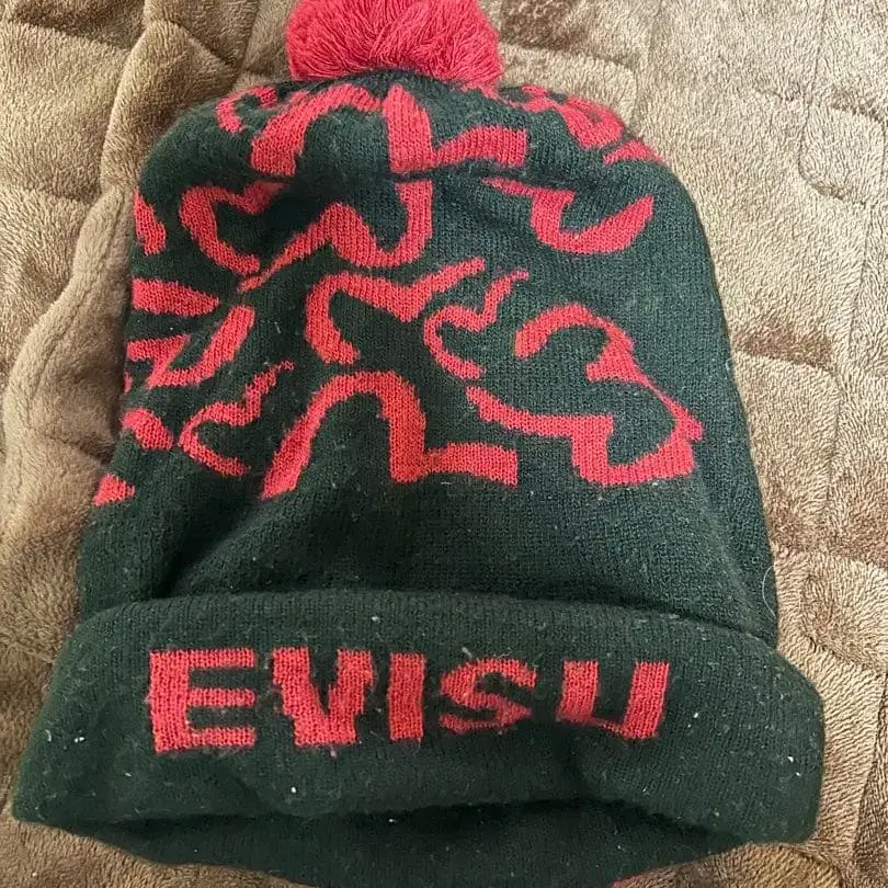 가격 인하! EVISU 폼폼 포함 니트 모자 블랙 레드