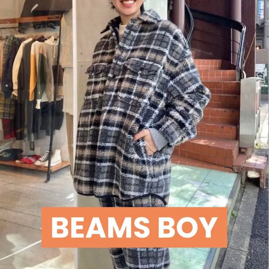 BEAMS BOY 빔즈 보이 체크 보아 CPO 블루종 자켓