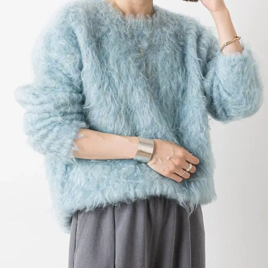 omekashi 샤기 니트 가디건 오메카시 스카이블루
