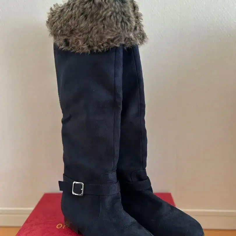 [ ORientaL TRaffic ] 네이비 퍼 포함 롱 부츠