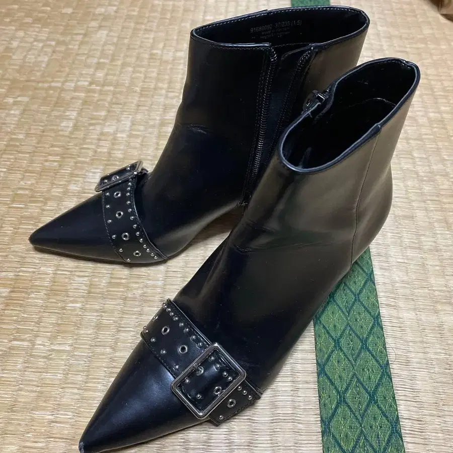 스터드 장식 블랙 스틸레토 부츠