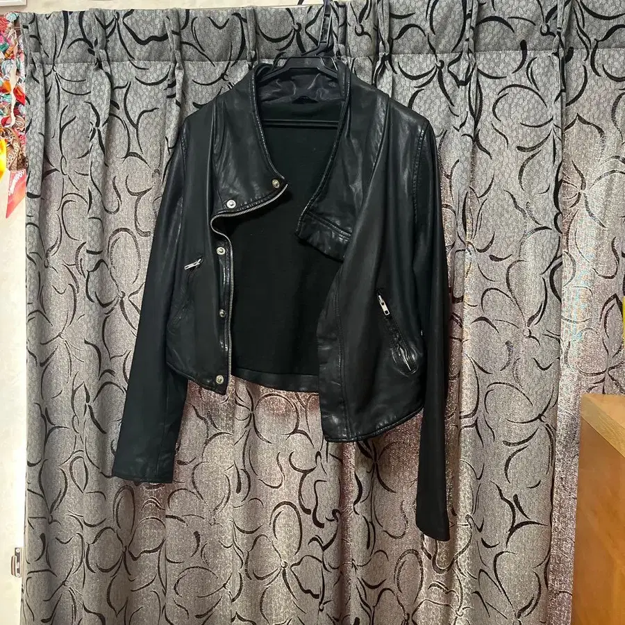 mystic 블랙 가죽 라이더 자켓