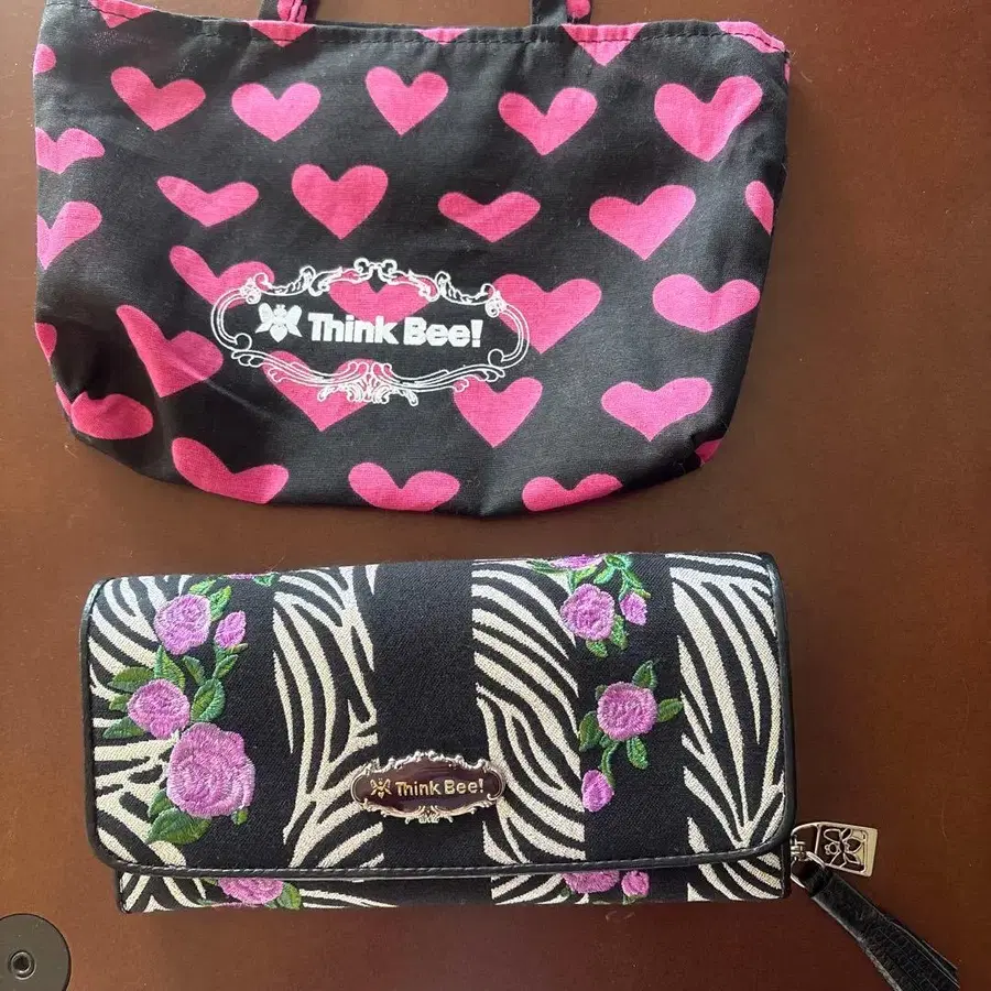 Think Bee! 제브라 패턴 장미 자수 장지갑