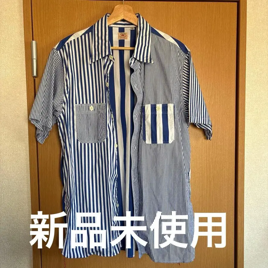 슈가케인 반팔 셔츠 X-LARGE 블루 화이트 스트라이프
