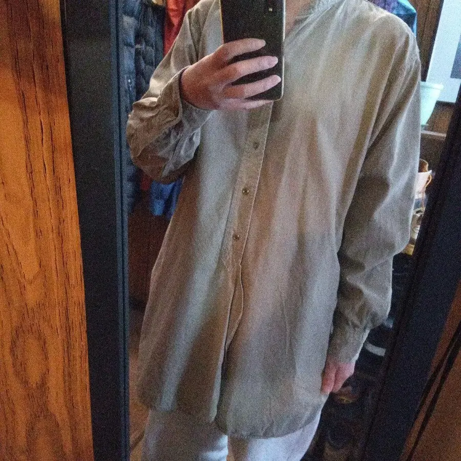 구제 의류 vintage 베이지 긴팔 셔츠 스탠드 카라