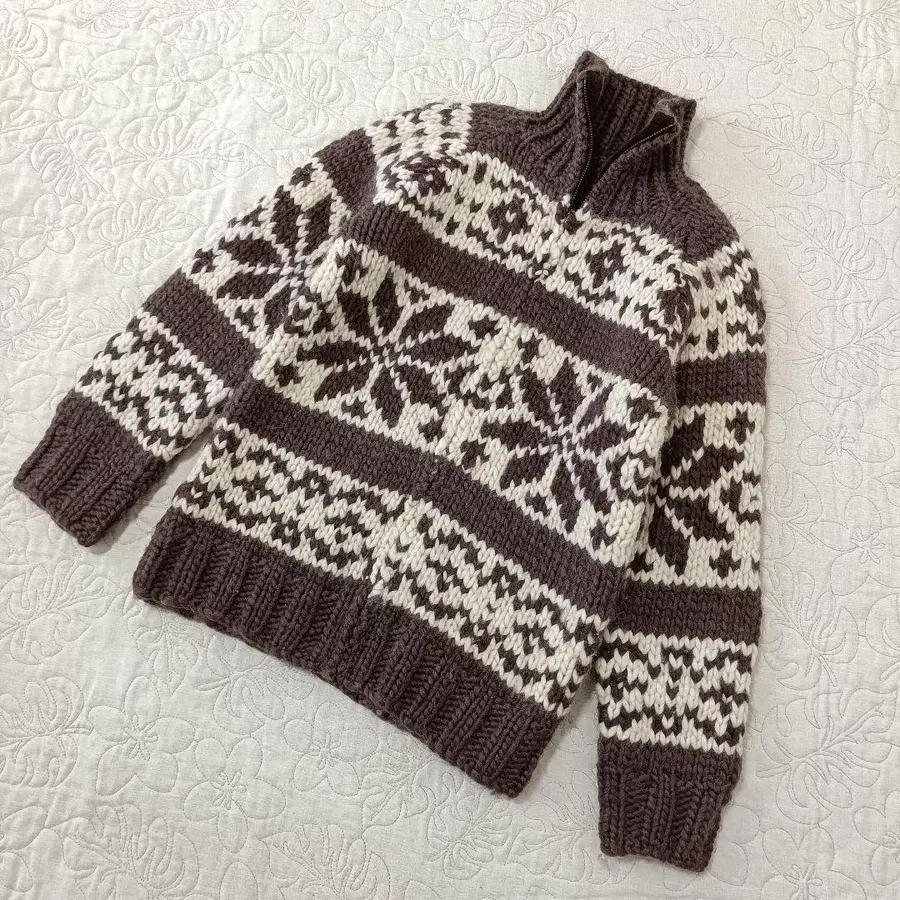 새상품급 코위찬 니트 스노우 빈티지 두툼한 스웨터 캐나다 지퍼 S