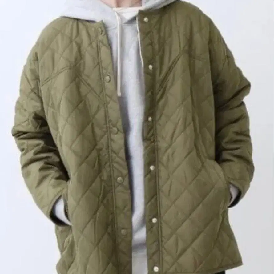 목 부분이 깔끔한 노카라 퀼팅 자켓입니다.